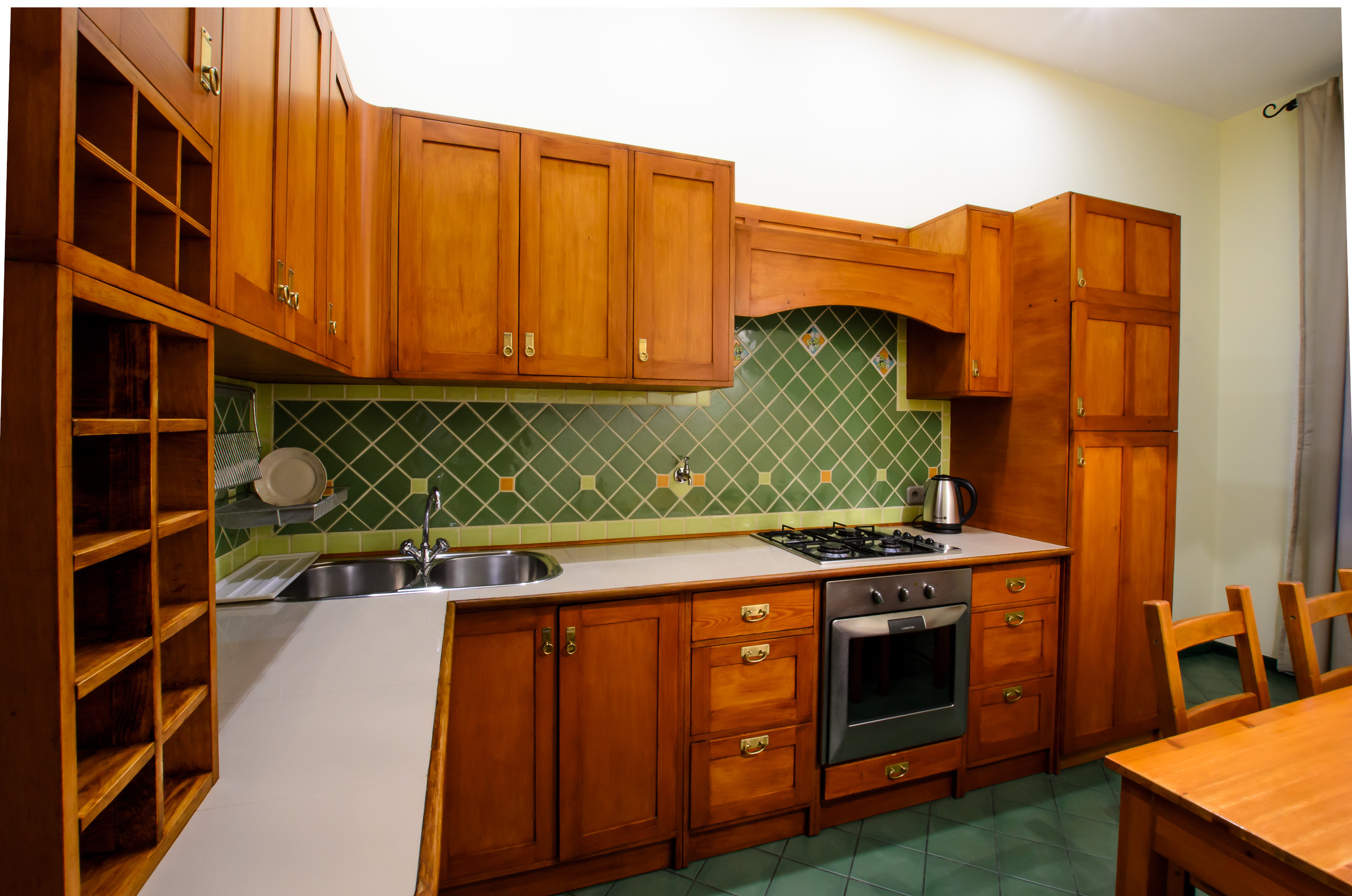 Dwa pokoje, dwa podwójne łóżka w dwóch pokojach. Łazienka z natryskiem i umywalką, toaleta, aneks kuchenny ze stołem dla 4 osób kompletnie wyposażony, sofa, telewizor, radio, cd, Internet. Zlokalizowane na parterze cichej oficyny.